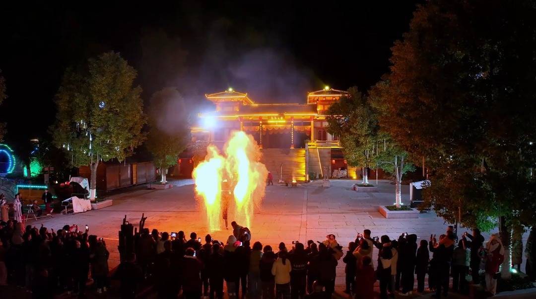 昭君村景区推出了“古今好戏趣满园 杂技火艺闹新年”的新春盛宴,从农历腊月二十八至正月初五,每天10:00--22:00,精彩不停。威风锣鼓、舞狮巡游、国潮小丑、汉服展示、曲艺杂谈等节目轮番登场,让游客沉浸式感受传统民俗的魅力。夜场活动更是高潮迭起,每晚19:00汉服巡游拉开夜场序幕,还有打铁花、提火壶、梅花桩舞狮等非遗绝技表演和篝火烟花晚会,陪大家一起热闹迎新年。