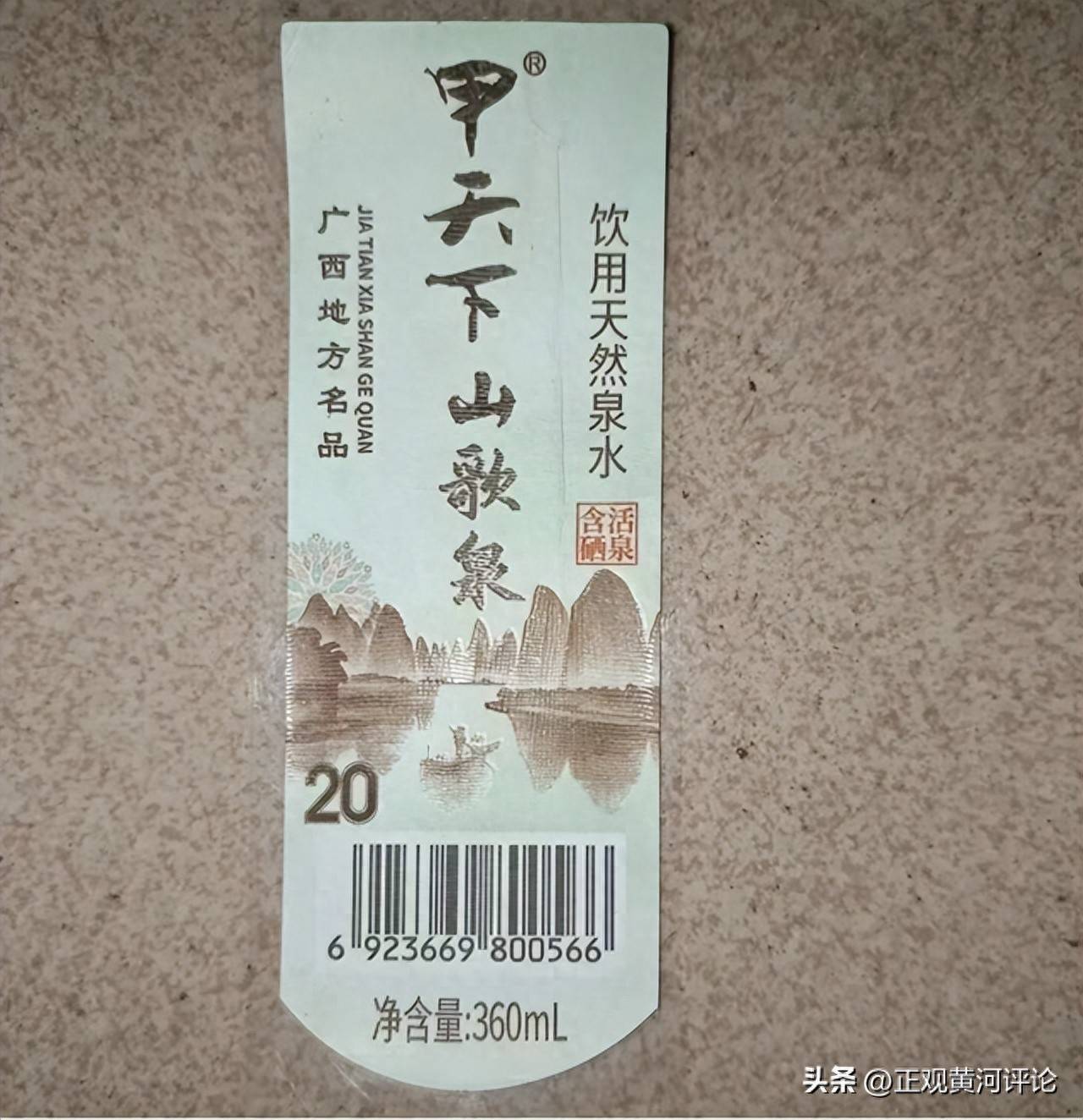 近日,有网友在社交媒体发帖称,广西秀瑶圣水矿泉水有限公司生产的“甲天下山歌泉”饮用天然泉水,包装标签上印有与20元人民币背面高度相似的图案,质疑企业违规使用人民币图样。